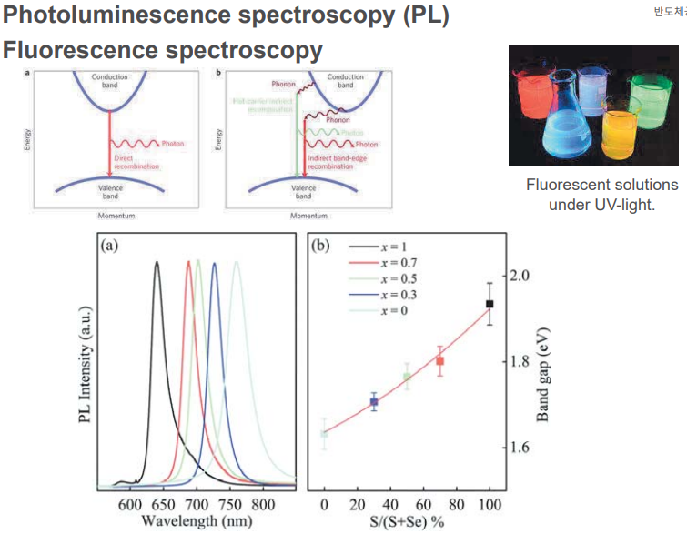 어떤 물질에 에너지를 주면 밴드갭만큼 광자가 튀어나오고 광자를 관측할 수 있다. 특히 직접 밴드갭 물질의 경우, 에너지 차이만큼 광자가 에너지를 갖고 나오기 때문에 에너지의 wave length를 관측하여 그 물질의 밴드갭을 유추할 수 있다. QLED의 원리를 이것을 통해 알 수 있다.