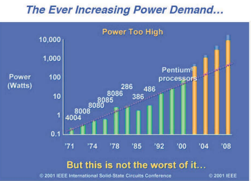 칩에 트랜지스터가 많이 들어갈수록 에너지 소모량 또한 커진다.