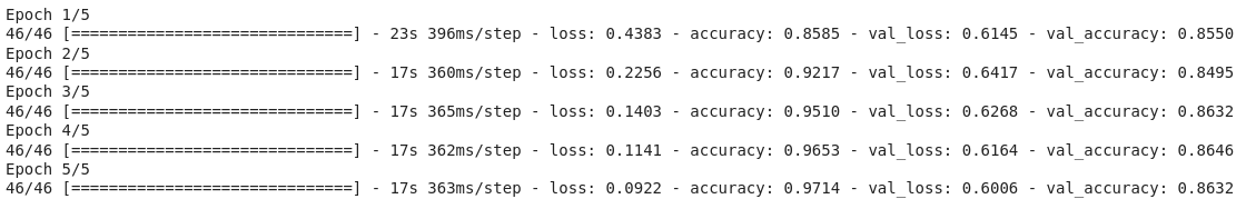 - 그리고 마지막에 하나의 Dense 층을 둔다. Dense의 유닛 개수는 5개로 이 예제에서 사용하는 꽃 레이블 5개에 맞췄다. activation function은 softmax를 이용한다.