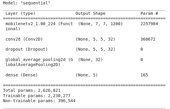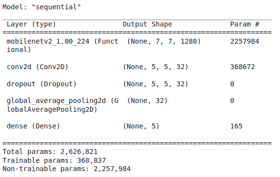 여기서는 분류 레이어만 재트레이닝하고 MobileNet의 사전 트레이닝된 기능 추출 레이어는 다시 사용한다.