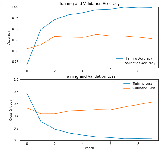 - 이미지 분류에 특화된 relu 함수를 사용하고 드랍아웃을 0.2로 지정하여 과대적합이 일어나지 않도록 한다.