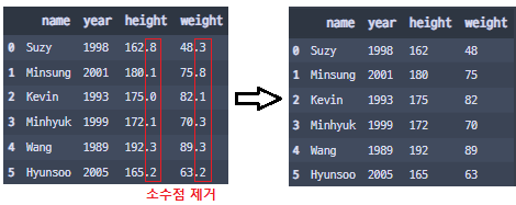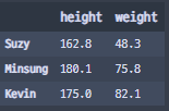print(type(height),'\n',type(weight),'\n',type(df)) # 타입 확인