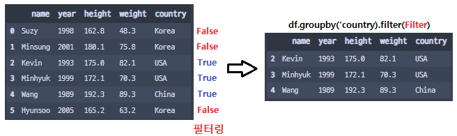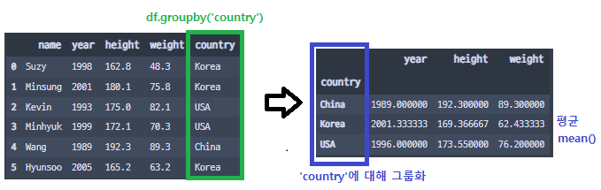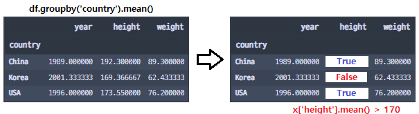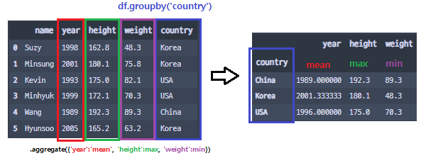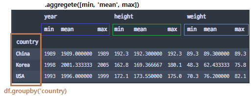 - get_group() 메서드를 통해 groupby를 진행한 데이터에서 특정 key값의 데이터를 추출할 수 있다.