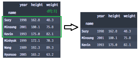 - set_index를 이용하여 원하는 열(column)을 index로 지정할 수 있다.