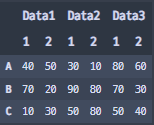 columns=[['Data1', 'Data1', 'Data2', 'Data2', 'Data3', 'Data3'],\