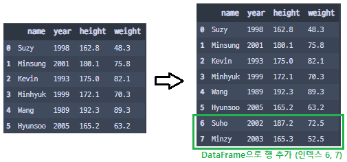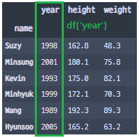 - DataFrame은 여러 개의 시리즈가 모여 하나의 행렬로 구성된 데이터이다.