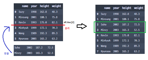 - 2개의 Series를 연결하여 1개의 Dataframe을 생성하였다.