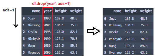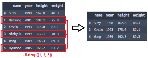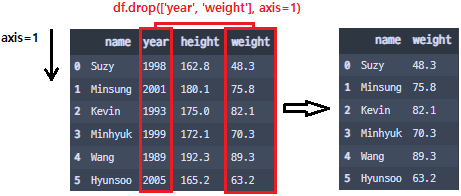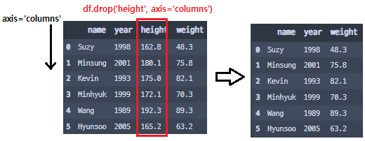 - 모든 method는 앞서 만들었던 위의 Dataframe을 기준으로 수행한다.