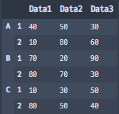 df = pd.DataFrame(data, columns=['Data1', 'Data2', 'Data3'], index = index)